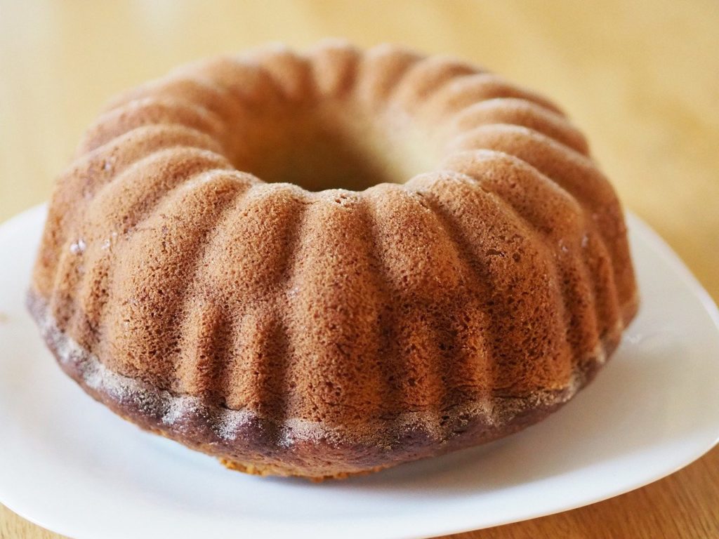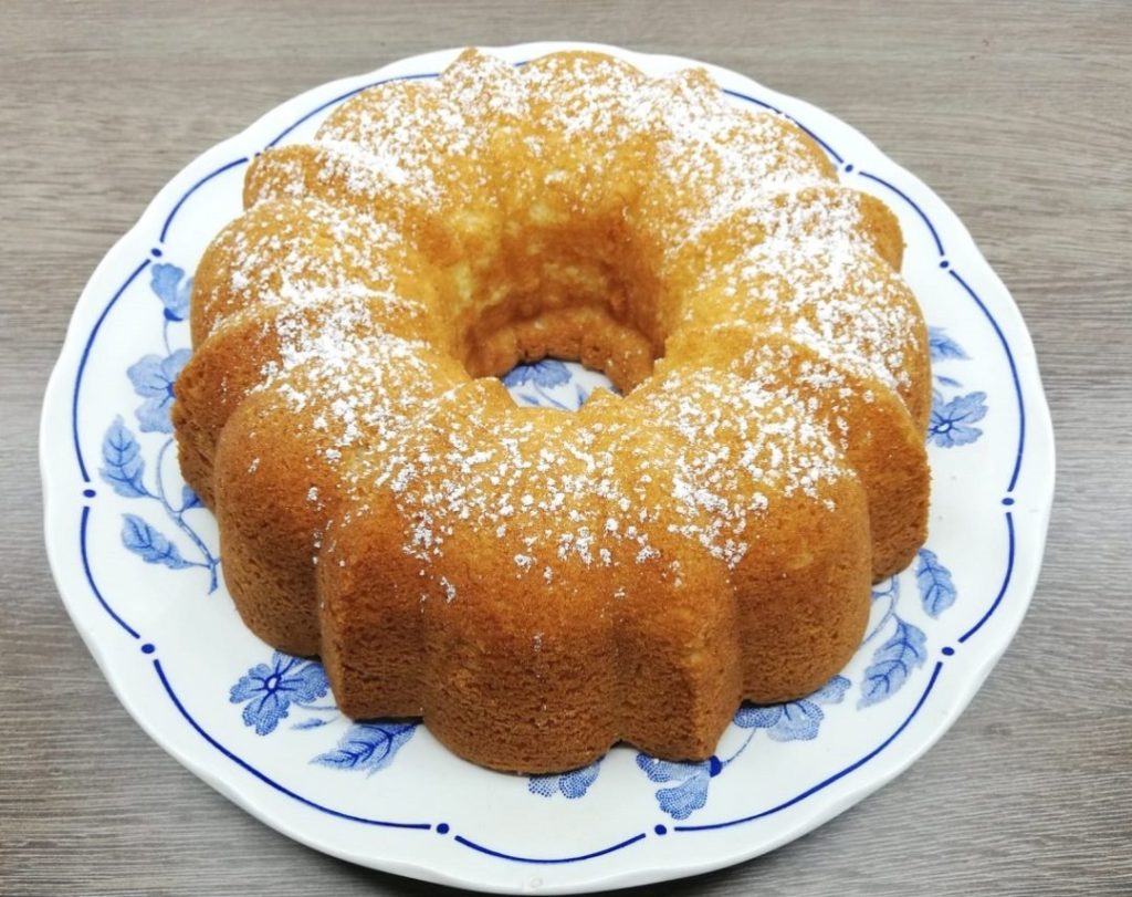 Użyj drewnianej wykałaczki, by sprawdzić czy ciasto jest dobrze upieczone. Jest wystraczające, jeśli masa nie przykleja się do drewnianego szpikulca i możemy je wtedy wyjąć z piekarnika. Ciasto będzie oczywiście ciepłe, więc zostawiamy na 10 minut do wystygnięcia i dekorujemy cukrem pudrem.