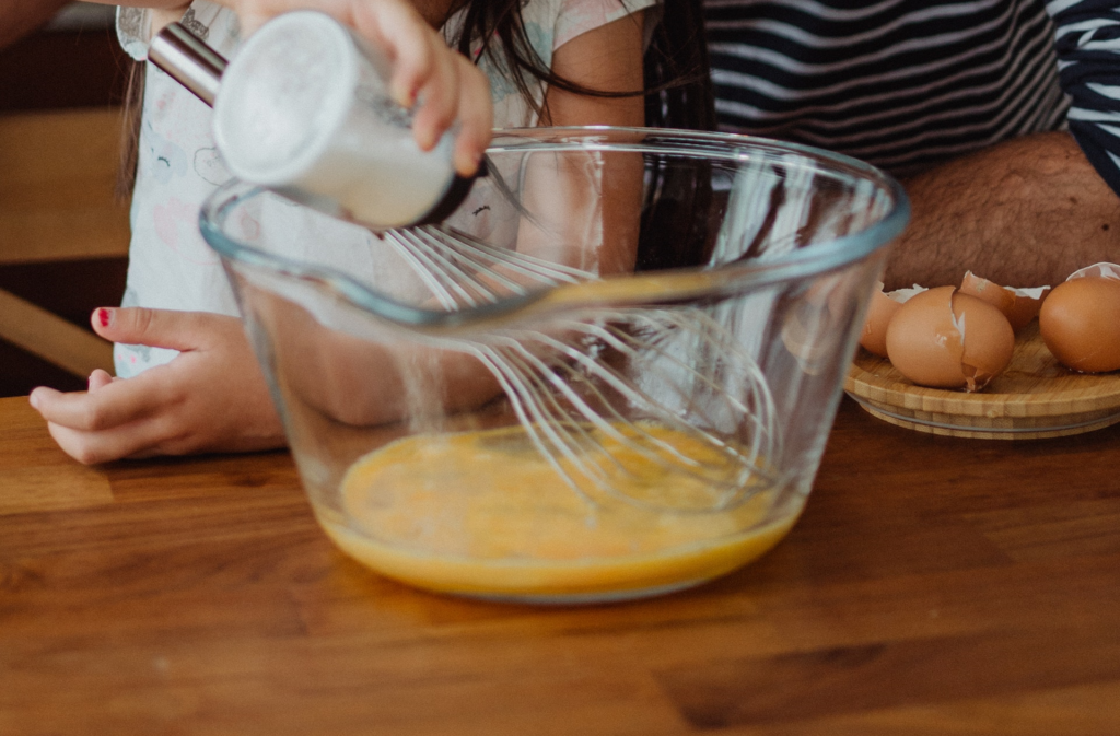 Zacznij od nagrzania piekarnika do 180℃. Oddziel białka od żółtek i dosyp do drugich cukier.