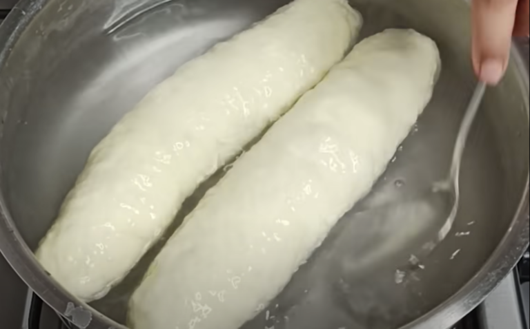 Uformować bagietki i pozostawić do zakwaszenia na 20 minut. Zagotuj wodę z odrobiną soli w garnku. Po 20 minutach fermentacji włożyć bagietki.