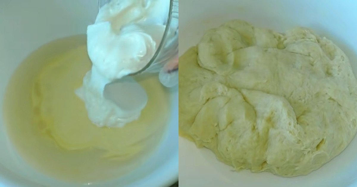 Teraz zagnieść ciasto. Powinien być miękki i elastyczny. Przykryj miskę folią spożywczą i wstaw do lodówki na co najmniej 2 godziny. Jest to możliwe na noc. Schłodzone ciasto podzielić na 4 części. Jedną z nich uformuj w kulkę na posypanej mąką powierzchni. Rozwałkuj kulkę w okrągłe ciasto. Pokrój w trójkąty.