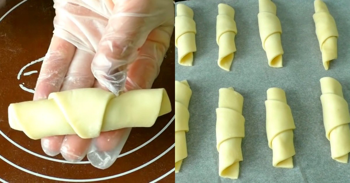 W szerszej części połóż konfiturę wiśniową lub marmoladę. Zwiń bułki. Połóż produkty na blasze wyłożonej pergaminem. Bułki pieczemy w piekarniku nagrzanym do 190 stopni przez około 20 minut. Może trochę dłużej. Powinien nabrać złotego koloru. Zrumienione bułki posyp cukrem pudrem.