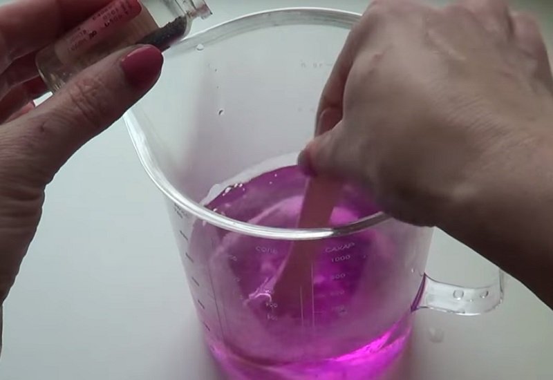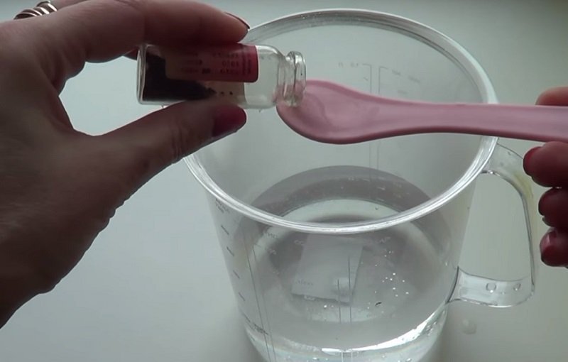Niecałą wymaganą ilość proszku wsypać do wiaderka z gorącą wodą, a nadmanganian potasu należy rozpuścić w 1 szklance wody. Woda powstanie lekko różowa, co jest naturalnym procesem.