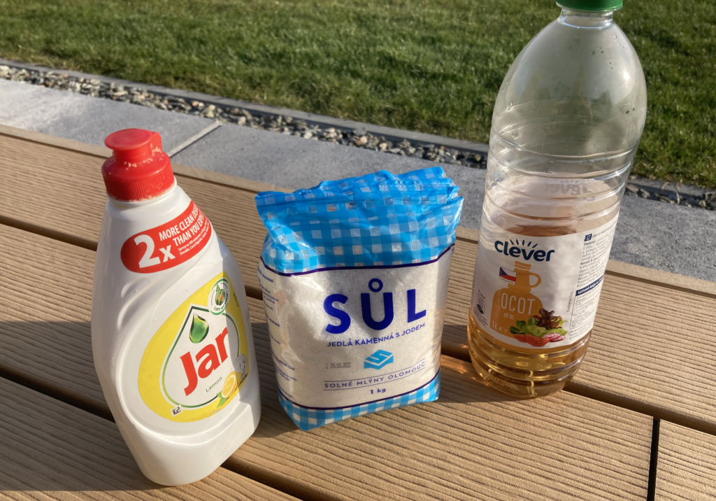 Do wykonania środka będziesz potrzebować także butelki z rozpylaczem. Składniki te są niedrogie, a ich mieszanka wystarcza na cały ogród. Proces przygotowania jest niezwykle prosty. Wsyp sól do pojemnika, dodaj ocet i połącz je razem. Pozostaw na około godzinę, aby sól całkowicie się rozpuściła. Następnie dodaj detergent do naczyń i dokładnie wymieszaj wszystkie składniki. Po wymieszaniu, środek jest gotowy do użycia w atomizerze.