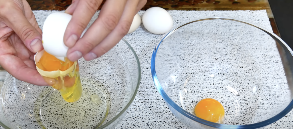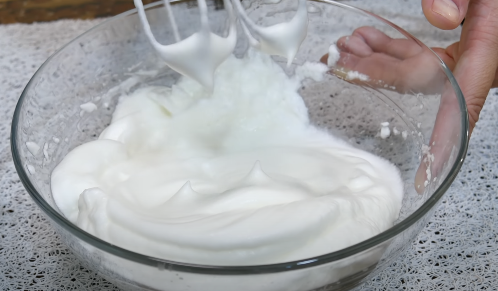 Ubij 4 białka z dodatkiem szczypty soli na sztywną pianę.