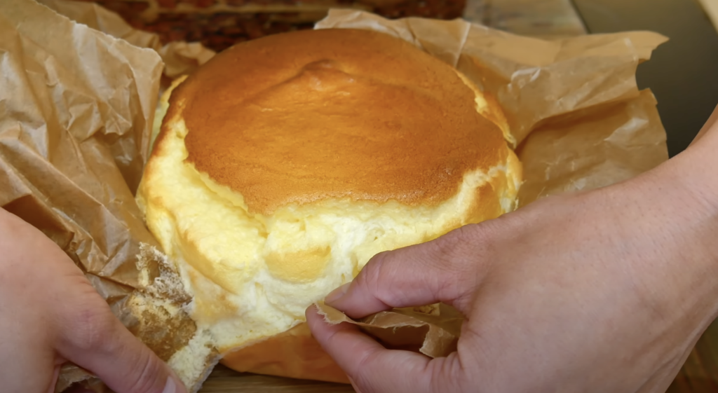 Pozwól ciastu ostygnąć, a następnie zdejmij papier do pieczenia i posyp wierzch cukrem pudrem.
