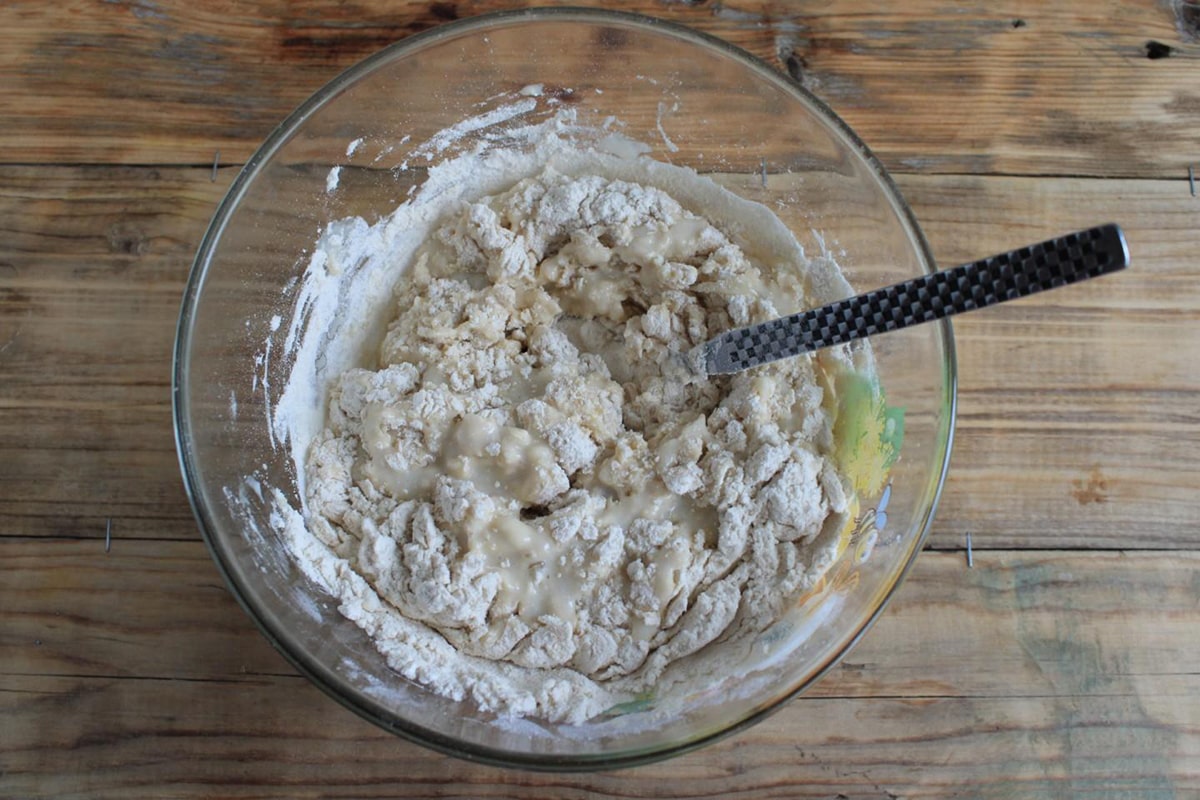 Następnie mieszamy wszystkie płynne składniki, dodajemy do nich cukier oraz sól i musimy wymieszać do jednolitej konsystencji. Cały czas mieszając, dodajemy małymi porcjami mąkę.