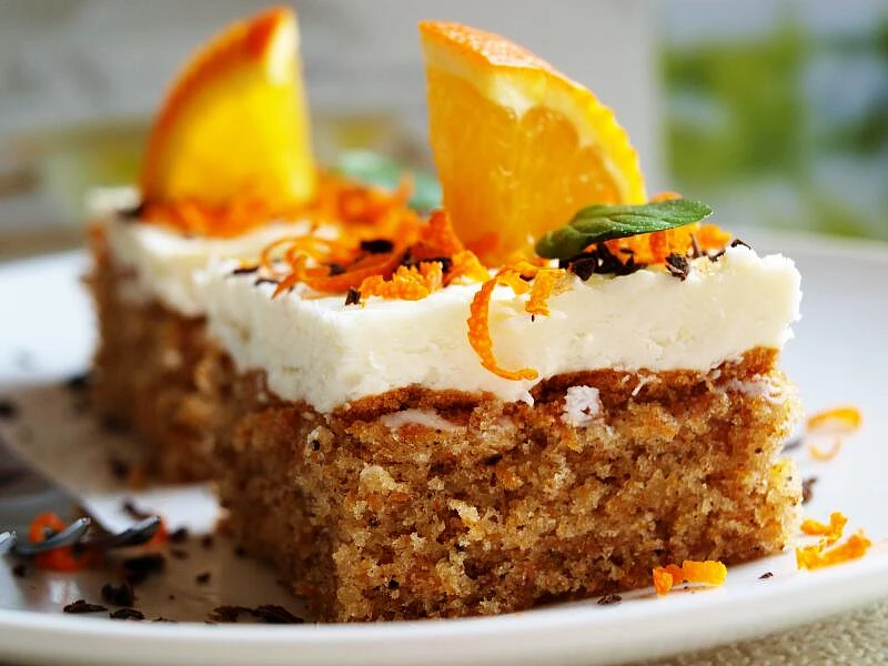 Dużą blachę wcześniej wysmarować masłem i posypać mąką lub wyłożyć papierem do pieczenia. Drobno zetrzyj marchewkę. Białka ubić z połową cukru na sztywną pianę. Żółtka ubijamy z drugą połową cukru na puszystą masę. Do piany z żółtek dodaj olej, wodę i inne składniki, a na koniec ostrożnie ubij śnieg w cieście.