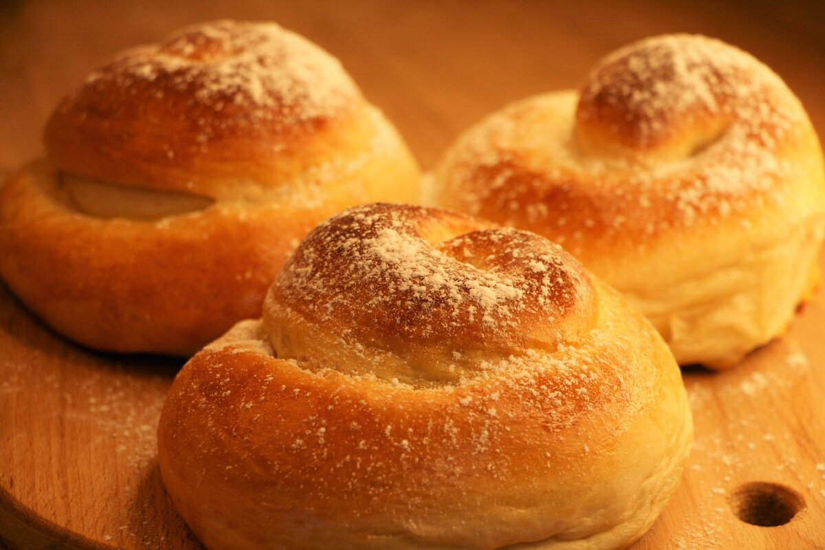 Przed włożeniem bułek do piekarnika posmaruj je mieszanką żółtka i mleka, będą błyszczące.