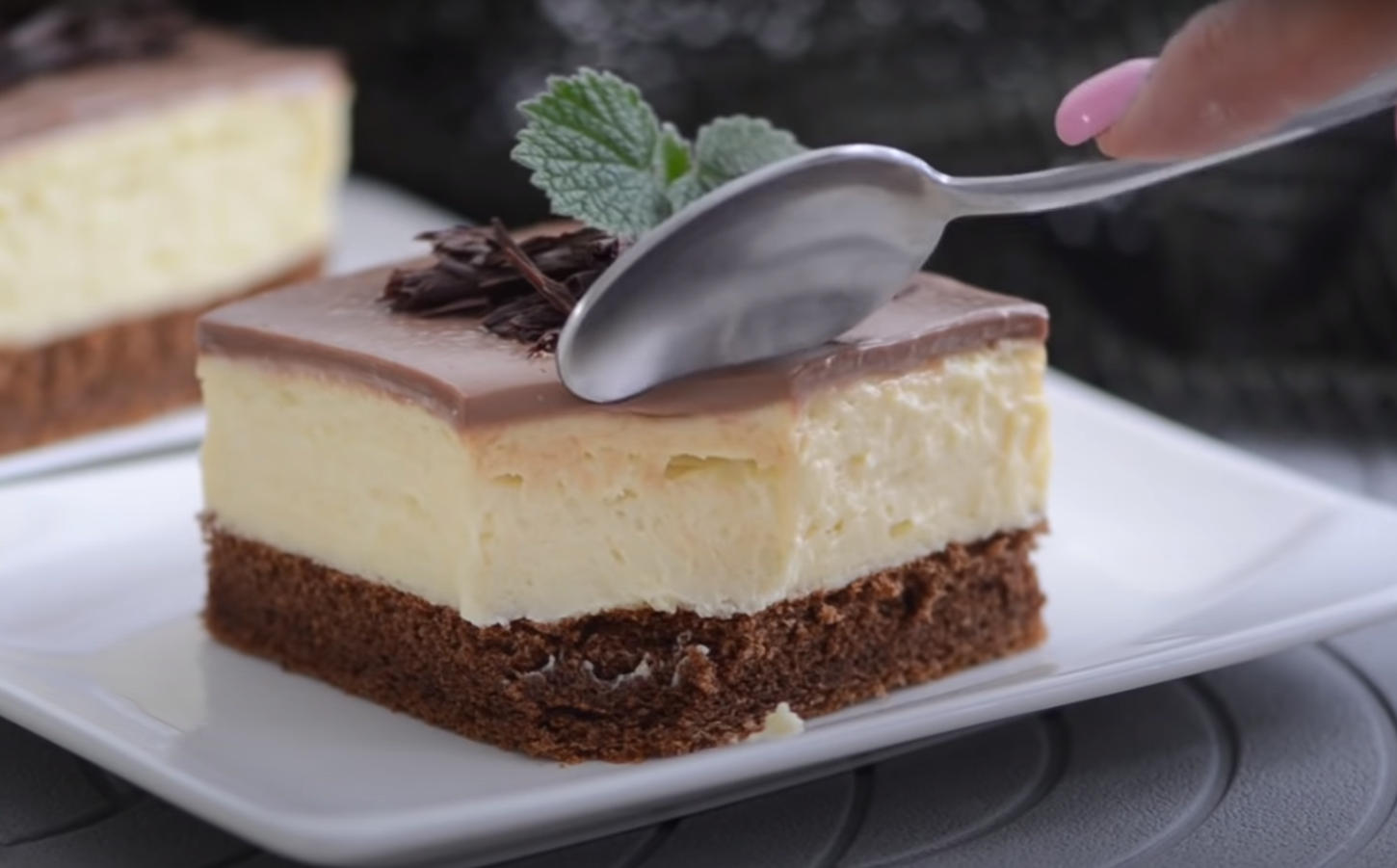 W międzyczasie ubij schłodzony krem z miękkim masłem. Następnie równomiernie nałóż krem na upieczony biszkopt. Na koniec przygotuj polewę. Czekoladę mleczną połam, rozpuść w gorącej śmietanie i ubij, aż oba składniki dobrze się połączą. Całą powierzchnię kremu polej i pozostaw do zestalenia w lodówce.
