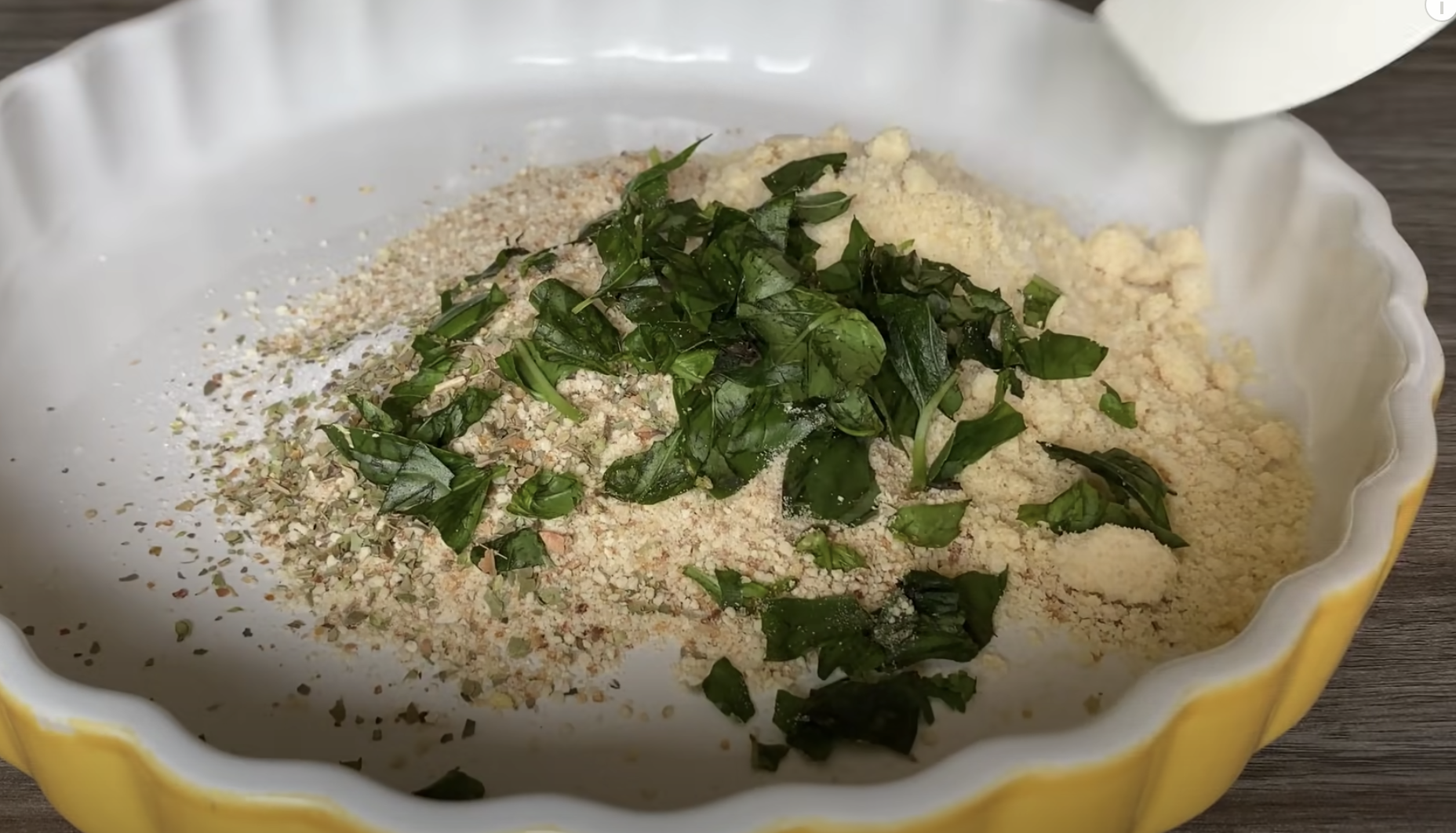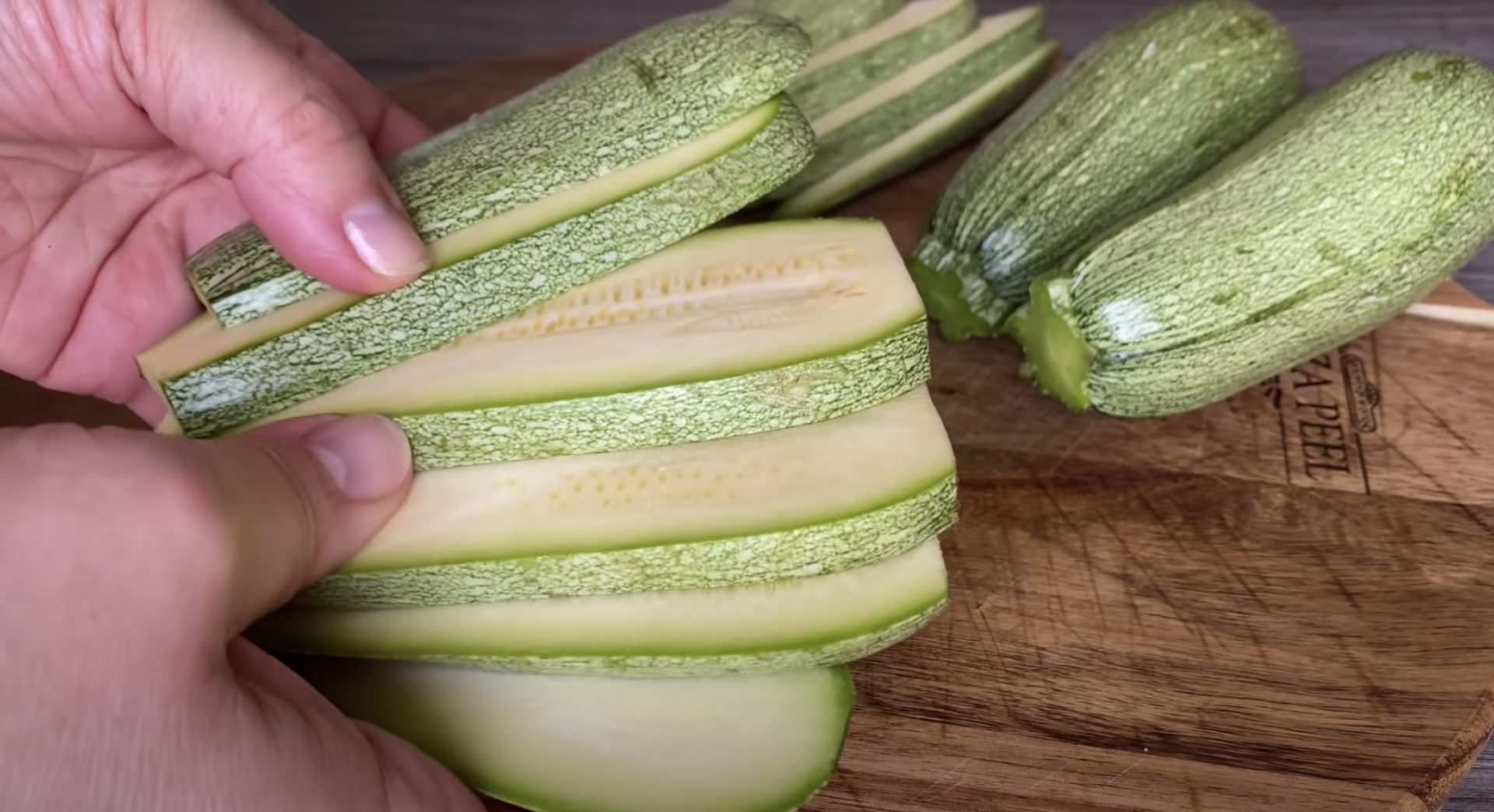 Ułóż plastry cukinii posmarowaną stroną na masie do panierowania.