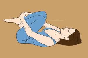 Leżąc na plecach, podnieś kolana w kierunku klatki piersiowej. Kolana i kostki powinny być zawsze złączone. Owiń dłonie wokół kolan, a następnie przyciągnij nogi bliżej siebie. Teraz poczujesz, jak rozciągają się dolna część pleców i uda. Na początku ćwiczenie to będzie trudne, ale z czasem można je opanować. To ćwiczenie w końcu przyniesie Ci ulgę i ukojenie. Pamiętaj o głębokim i spokojnym wdechu.