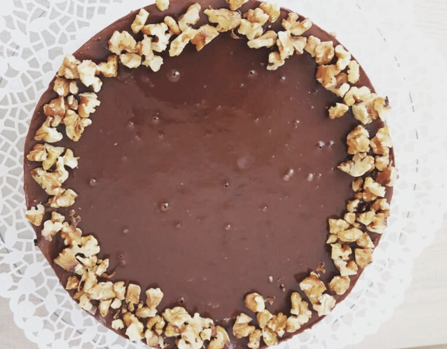 Na koniec zrobimy w garnku polewę  z cukru, kakao, śmietanki i masła. Po wystygnięciu deseru wyjmujemy formę i polewamy deser polewą, którą wygładzamy na całej powierzchni. Udekoruj górę ozdobną torebką. Wszystko gotowe. Możemy kroić i podawać.