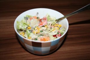 Ta sałatka będzie świetnym dodatkiem do obiadu. Podana w towarzystwie chleba i wędliny może też stanowić pożywną kolację.