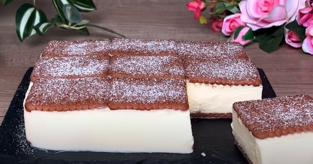 Na warstwę ciasteczek rozprowadź część kremu. Powtórz warstwę ciasteczek i kremu, aż wykorzystasz wszystkie składniki. Ostatnią warstwą powinien być krem. Wstaw deser do lodówki na kilka godzin, aż się ustabilizuje i dobrze zwiąże. Przed podaniem posyp deser cukrem pudrem dla dekoracji.