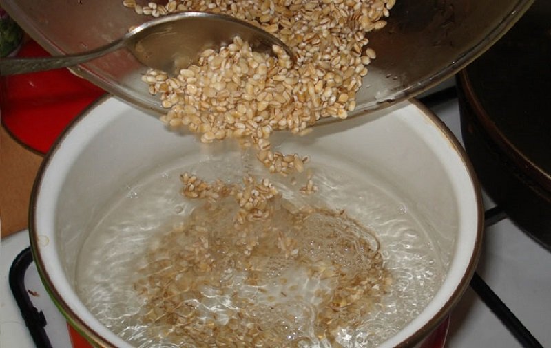 Podpal pojemnik z jęczmieniem. Doprowadzić do wrzenia, następnie zmniejszyć ogień i gotować do ugotowania pod przykryciem. Dodaj sól w połowie gotowania.