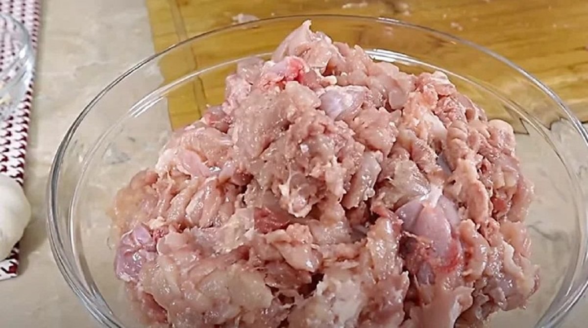 Mięso odciąć od kości kurczaka, zalać wodą i ugotować.