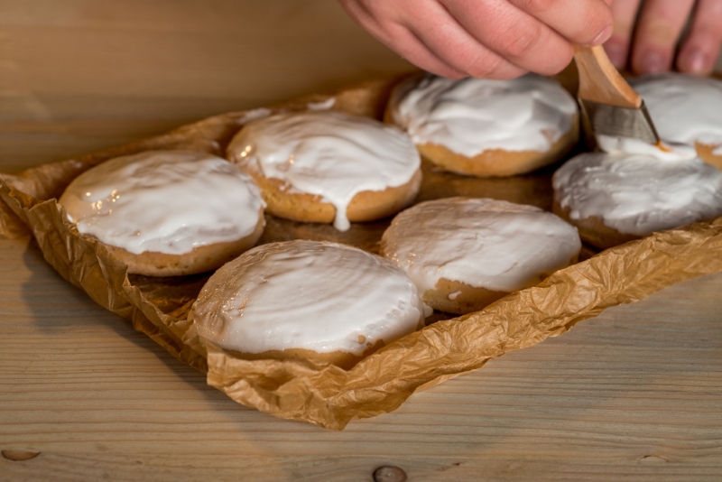 Piecz w 180-190 stopniach przez 25 minut. W między czasie ubij pozostałe białko z trzeba łyżkami cukru. Po wyjęciu pierników, posmaruj je przygotowaną polewą. Kiedy to zrobisz włóż je ponownie do piekarnika tym razem na jeszcze 10 minut.