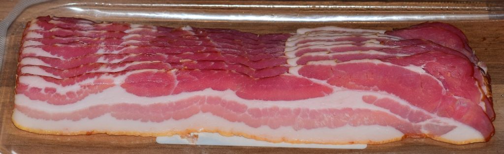 Blachę do pieczenia przykrywamy plastrami boczku.