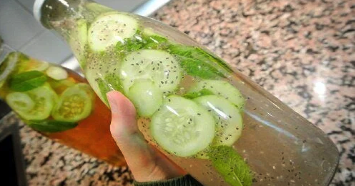 Ogórek obierz, umyj, a następnie pokrój w cienkie paski. Pokrój w plastry także przygotowaną cytrynę. Pokrojone ogórek i cytrynę, starty imbir oraz listki mięty wrzuć do dzbanka i zalej wodą. Tak przygotowany napój umieść w lodówce na całą noc.