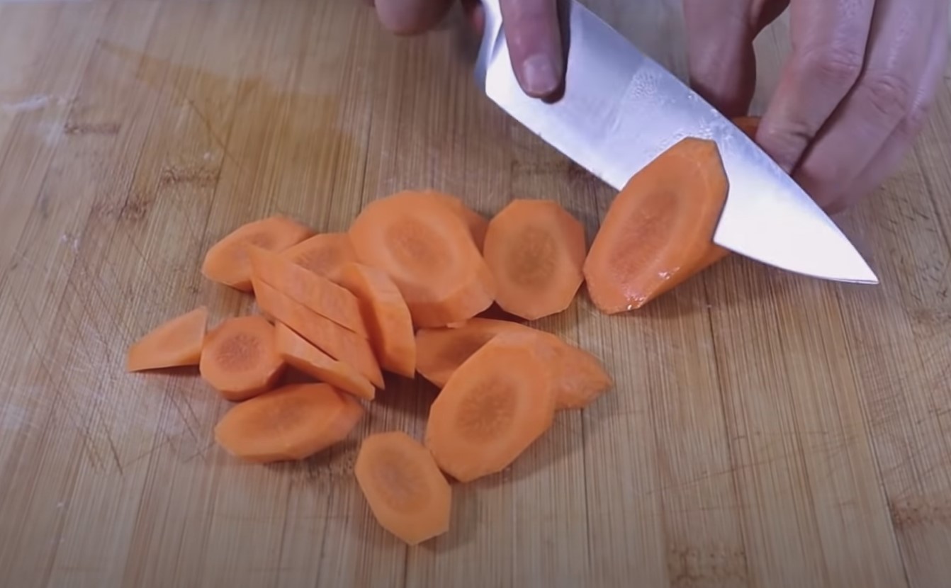 Marchewkę umyj, obierz i pokrój na nieco grubsze plasterki.