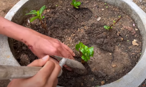 6. Teraz możemy sadzić sadzonki w doniczce z odpowiednią glebą. Hortensje uwielbiają kwaśną glebę. Dlatego możesz dodać do niego trochę torfu. Podłoże powinno być lekkie i dobrze przepuszczalne.