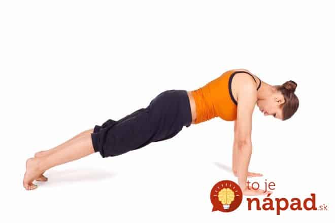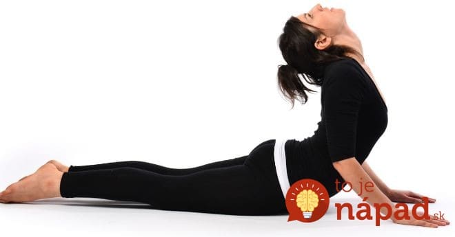 Rozłożywszy się na plecach, miejsce dla dłoni znajdź pod ramionami. Wdech, podnosisz ciało, ramiona wyprostuj. Następnie dolną część pleców i klatkę piersiową zgina. Szyję wyciągnij. Pozycję tę utrzymuj przez 10-15 sekund, a potem wracaj.