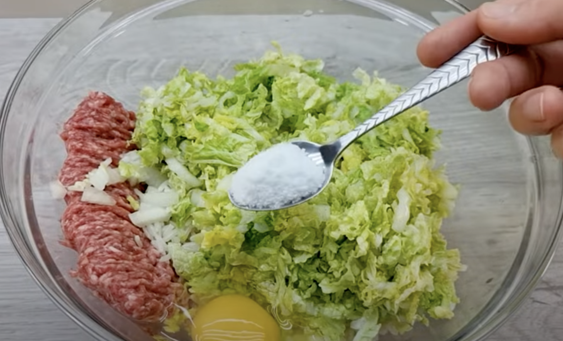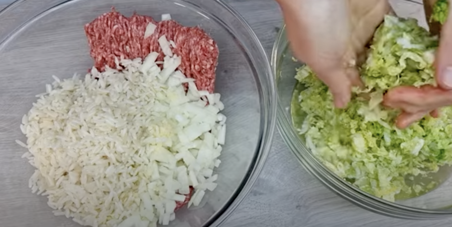 Następnie wymieszaj ją z mięsem mielonym, odsączoną dokładnie kapustą, jajkiem, ugotowanym ryżem oraz solą i innymi przyprawami.