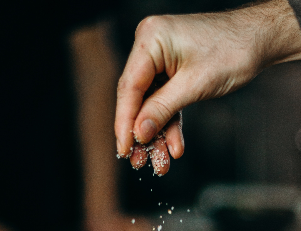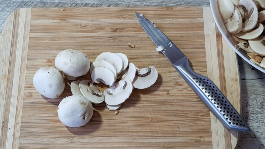 Następnie dodać posiekany koperek, sól i rozgnieść cebulę , aby puściła sok. Pieczarki i pomidory pokroić w plasterki.