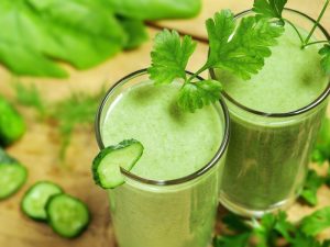 Przygotowane wcześniej zielone dodatki należy uprzednio umyć pod bieżącą wodą, a następnie osuszyć. Analogicznie postąpić z ogórkiem, który wymaga pokrojenia na plasterki. Kolejnym krokiem jest połączenie dotychczasowych składników i włożenie ich do blendera, a potem dodanie połowy przygotowanego kefiru. Zmieszać całość w blenderze, a następnie dolać drugą część kefiru i wymieszać.