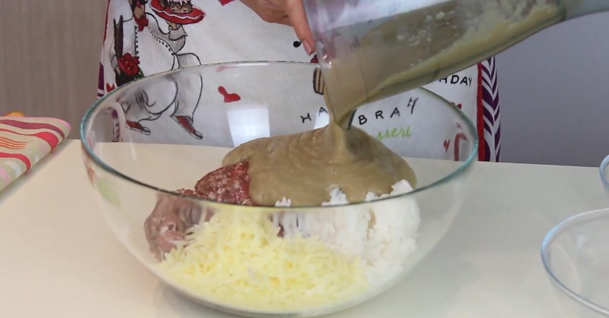 Do osobnej miski włóż mięso mielone. Zetrzyj twardy ser na najdelikatniejszej tarce. Dodaj do przygotowanego mięsa mielonego wraz ze schłodzonym ryżem.