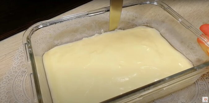 Po upływie 2 godzin wyjmij krem i za pomocą noża przetnij wzdłuż krawędzi, aby można było łatwo przełożyć go na deskę.