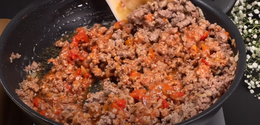 2. Mielona wieprzowina: Dodaj 700 g mielonej wieprzowiny do cebuli i czosnku. Dopraw solą, mielonym czarnym pieprzem i ziołami prowansalskimi do smaku. Smaż, aż mięso się zarumieni.
