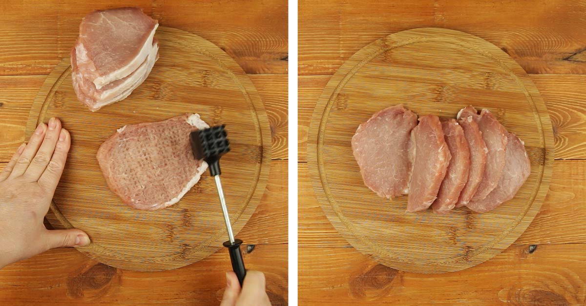 PRZYGOTOWANIE Rozpocznij od rozbicia mięsa, wybierając wieprzowinę lub kurczaka. Posyp je solą, pieprzem oraz dodaj ulubione przyprawy i zostaw, aby się zamarynowało.