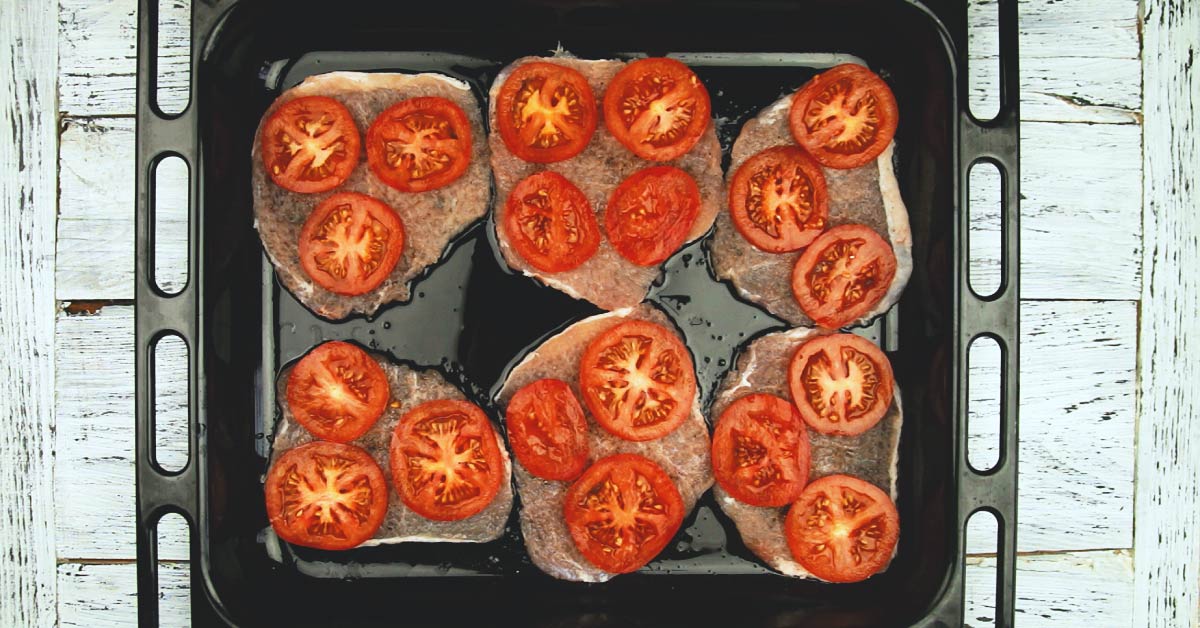 SKŁADNIKI 3 sztuki mięsa 1 cebula 2 ugotowane ziemniaki pomidor 4 łyżki śmietany lub majonezu 100 g sera 2 łyżeczki musztardy sól do smaku pieprz do smaku ulubione zioła ulubione przyprawy