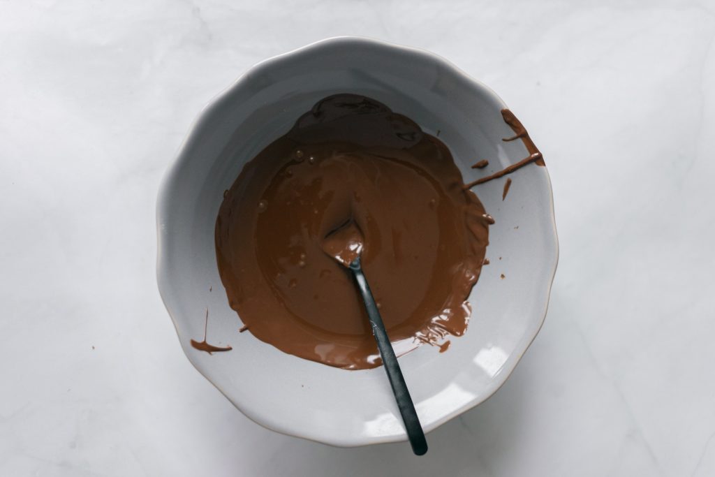Dodaj posiekaną czekoladę i śmietankę do osobnej miski. Podgrzać do rozpuszczenia czekolady.