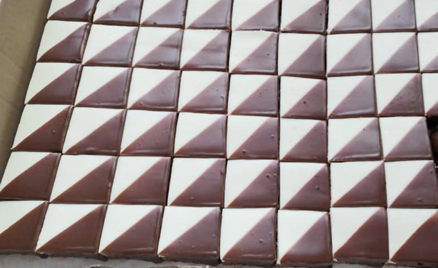 Do wyboru mamy jeden kolor – ja robię go z czekolady i kropli oleju. Jednak kostki wyglądają jeszcze piękniej, jeśli ozdobisz je lukrem czekoladowym w dwóch kolorach – ciemnym i jasnym. Dajemy mu zesztywnieć i możemy kosztować.