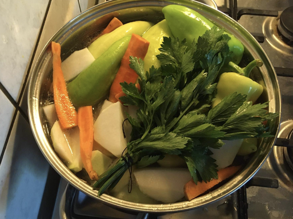 - lubczyk z szypułkami (ilość zależy od nas, przygotowujemy tyle, ile chcemy użyć jako przyprawę),