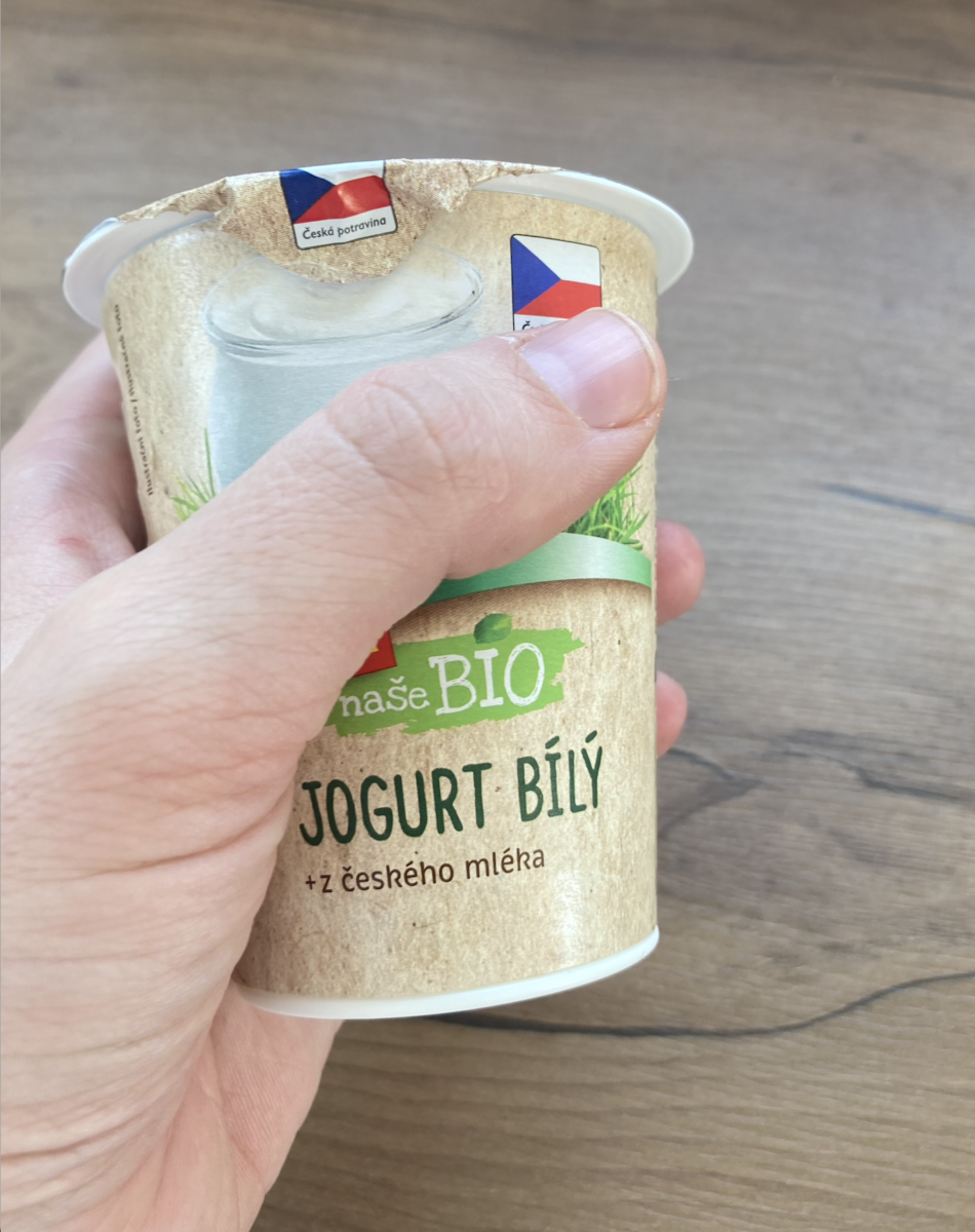 - Zmiksuj równą ilość mrożonych truskawek z jogurtem naturalnym (po 70 g każdego).