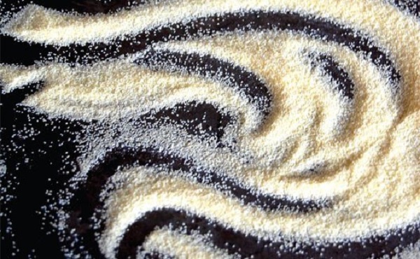 3. Formę do pieczenia, wyłóż papierem do pieczenia, wysmaruj masłem i posyp kaszą manną.