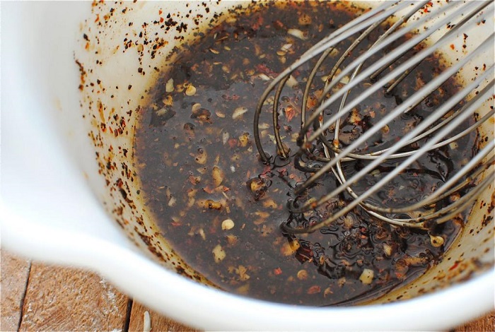 Jeżeli wypływający z niego sok ma czerwoną barwę znaczy to, że musimy dalej je gotować. Gdy płyn jest przezroczysty, wówczas nasze mięso jest gotowe. W międzyczasie można przygotowywać marynatę. W pierwszej kolejności należy wymieszać wodę z olejem, sokiem z cytryny oraz octem, a następnie dodajemy przyprawy, w tym cukier i sól.