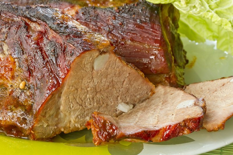 Jednak zanim zaczniemy piec warto przetrzeć mięso oliwą lub smalcem po wierzchu. Pieczemy do uzyskania wizualnie rumianego koloru skórki. Następnie zmniejszamy temperaturę do 160-180 stopni kontynuując pieczenie.