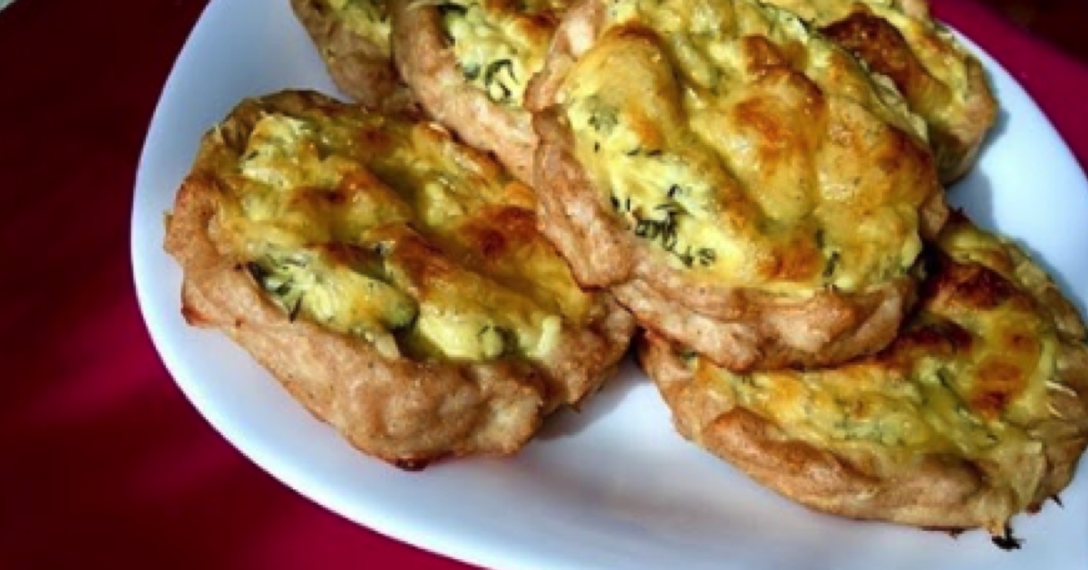 4. W osobnej misce, twaróg rozgnieć widelcem i wymieszaj z żółtkiem oraz pokrojonym drobno koperkiem. Na spłaszczone placuszki z mięsa, nałóż porcję farszu i posyp startym żółtym serem.