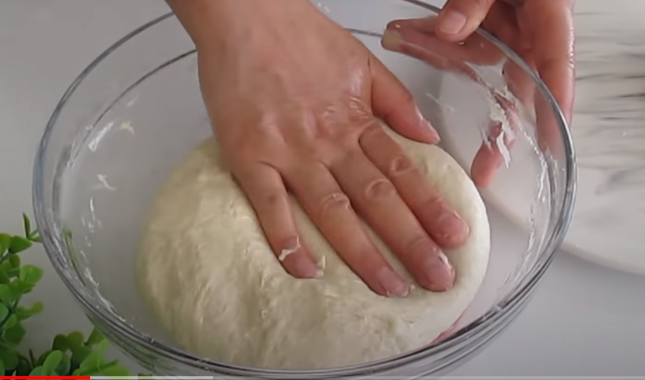Ciepłe mleko wymieszaj z cukrem i drożdżami i dokładnie wymieszaj przy pomocy trzepaczki. Pomału dodawaj sól, mąkę i wymieszaj ciasto. Następnie dodaj olej i wyrabiaj ciasto dalej.