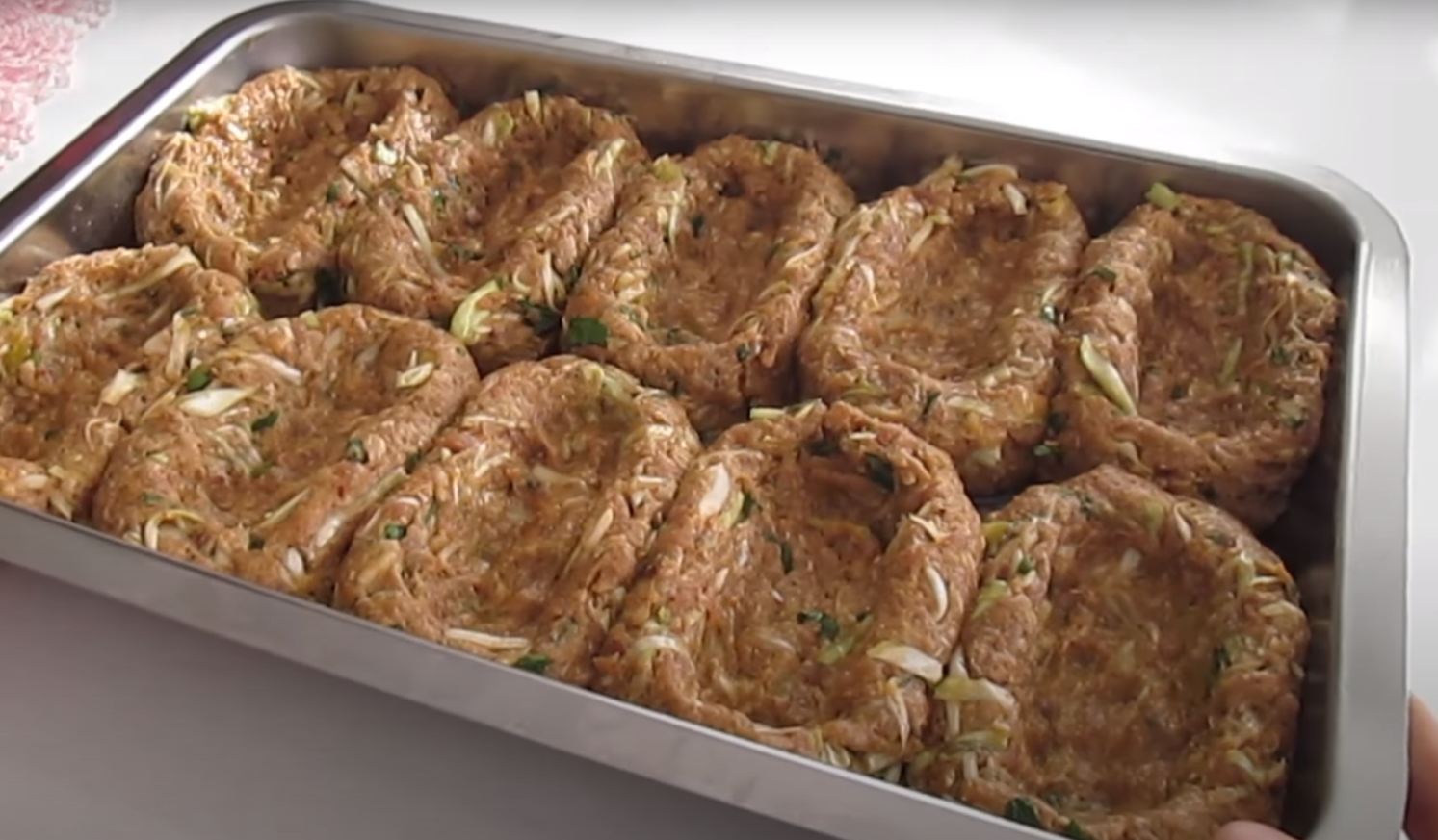 Dodaj starty czosnek, startą cebulę, mąkę, sól, czarny pieprz, kminek, czerwoną paprykę, tymianek i posiekaną natkę pietruszki. Na koniec wlej olej i dokładnie wymieszaj. Z przygotowanej masy mięsnej uformuj średniej wielkości kotlety i ułóż je obok siebie na natłuszczonej blaszce. Po środku każdego kawałka mięsa zrób wgłębienie. Piecz w piekarniku nagrzanym do 220 ° C przez około 30-35 minut.