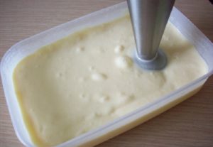 Nadszedł czas na ubicie śmietany. Upewnij się, że robisz to w osobnym pojemniku. Następnie musisz połączyć mieszanki i wstawić je do zamrażarki. Możesz mieszać mieszankę co godzinę, aby lody były bardziej puszyste.