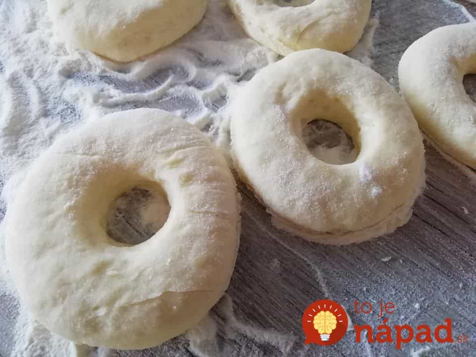 Pozwól mu rosnąć przez około 1 godzinę. Gdy wyrośnie rozwałkować na grubość około 1,5 cm. Kubkiem lub foremką wycinamy koła. Ułożyć na blasze wyłożonej papierem. Pozwól mu rosnąć przez 20 minut.