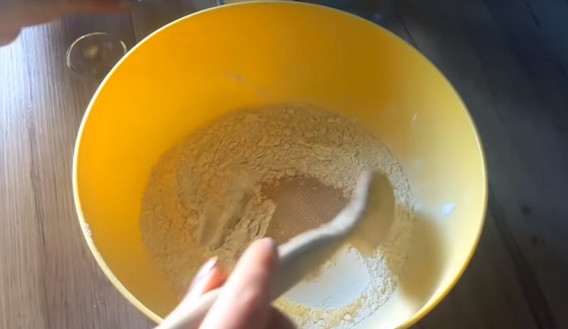 Przesianą wcześniej mąkę wymieszaj dokładnie z drożdżami oraz solą. Powoli wlewaj wodę i mieszaj aż ciasto będzie miało jednolitą konsystencję.