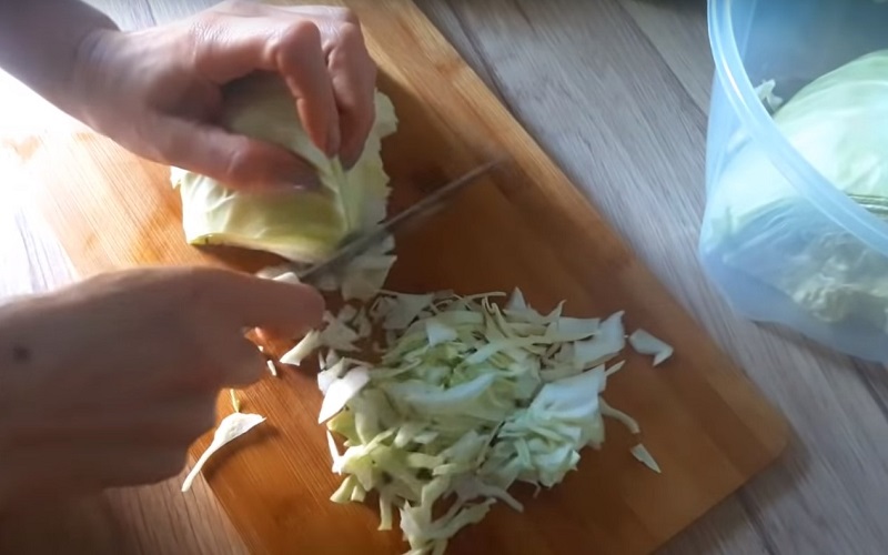 Nasmaruj miskę olejem, przełóż do niej ciasto, a następnie przykryj ściereczką miskę. Zostaw do wyrośnięcia. W międzyczasie posiekaj cebulę oraz kapustę na drobną.