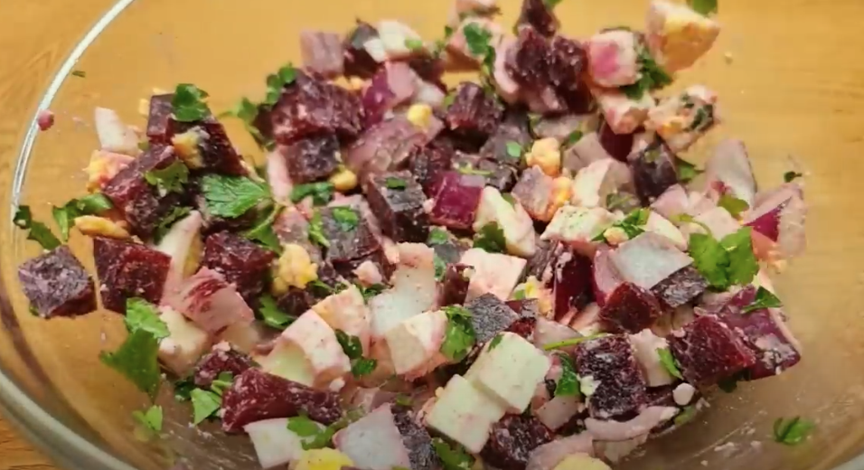 - 2 buraki (ugotowane, pokrojone w kostkę)