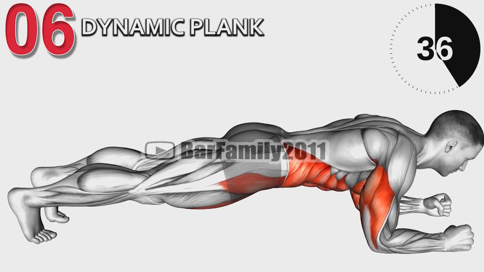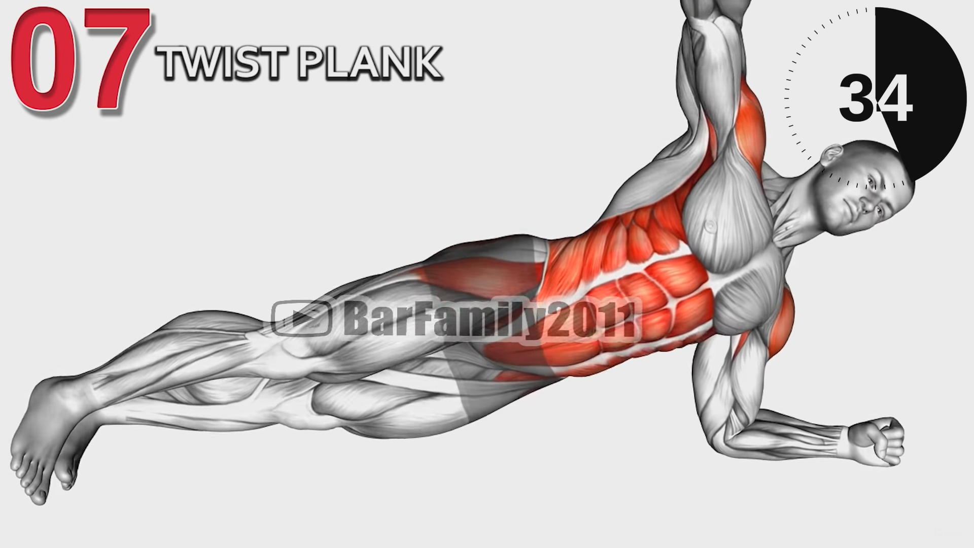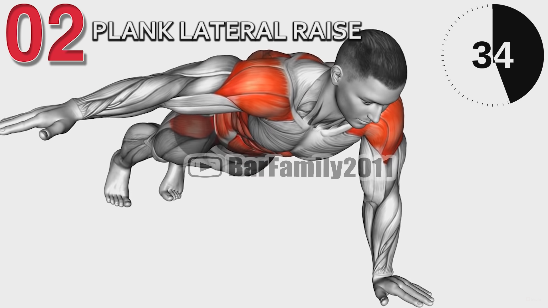 Opierając się na łokciach, obracaj ciało i podnoś ramię przez 45 sekund.